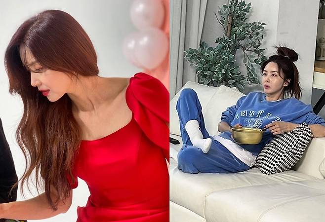 공개된 사진 속 박솔미는 레드 컬러의 강렬한 드레스를 입은 채 우아한 비주얼을 뽐내고 있다. 이어진 사진에서 박솔미는 '집순이'로 완벽 변신해 극과 극 비주얼을 선보였다.
