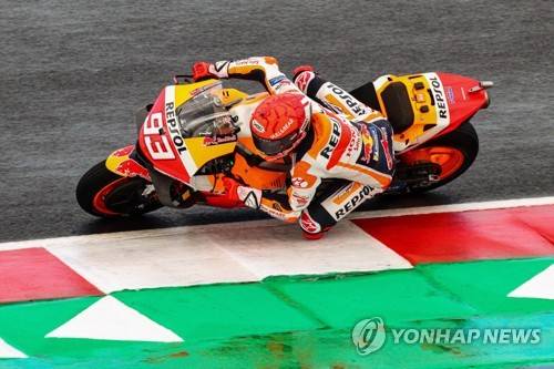 epa09539239 MotoGP rider Marc Marquez of Repsol Honda Team in action during the second free practice session for the Motorcycling Grand Prix of Italy and Emilia-Romagna at Misano World Circuit 'Marco Simoncelli' at Misano Adriatico, Rivieria di Rimini, Italy, 22 October 2021. The Motorcycling Grand Prix of Italy and Emilia-Romagna takes place on 24 October 2021. EPA/DAVIDE GENNARI