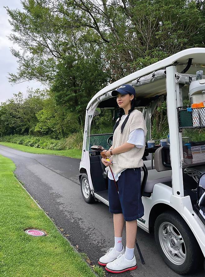 실용성과 스타일을 모두 잡은 차정원의 룩. 파스텔컬러, 낙낙한 상의와 슬림한 하의… 사복 여신의 옷 입기 법칙은 골프 룩에도 적용된다. 무심하게 입은 날엔 땋은 헤어스타일로 소녀 감성 업!