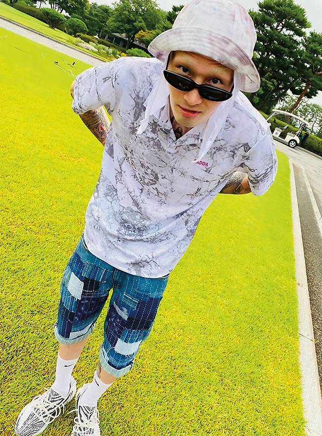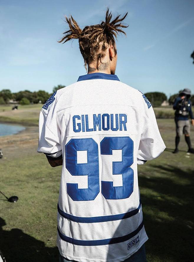피케 셔츠 위에 스포티 저지를 더한 강승현의 위트! 가볍고 통기성 좋은 농구 저지는 라운딩에 영향을 주지 않는 센스 있는 아이템이다. 볼캡, 버킷 해트 같은 스트리트 무드 액세서리와도 찰떡!