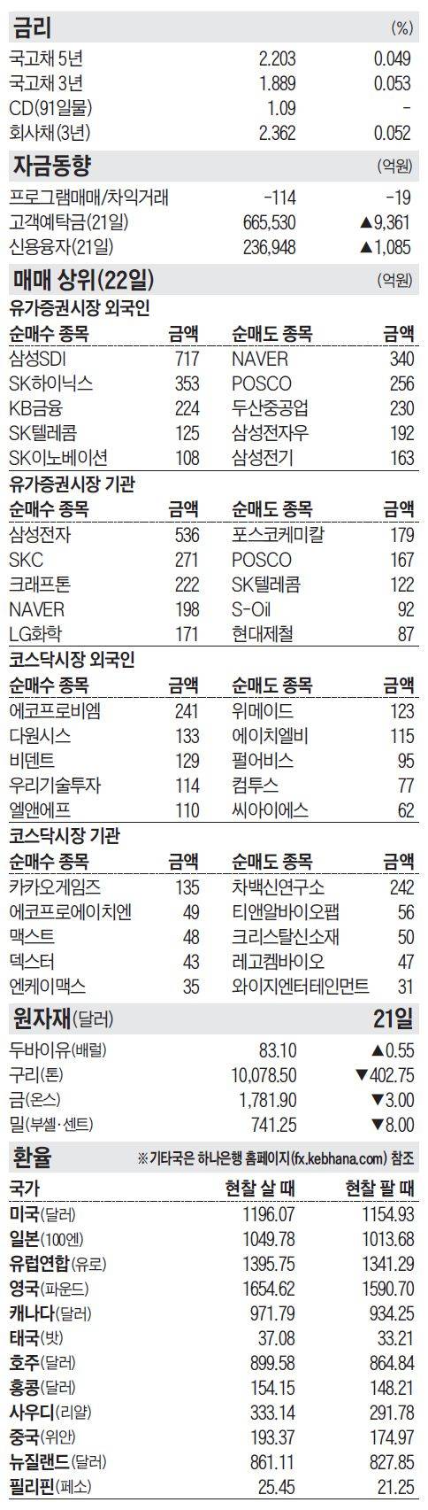 [주식 매매 상위 종목 및 환율] 2021년 10월 22일자
