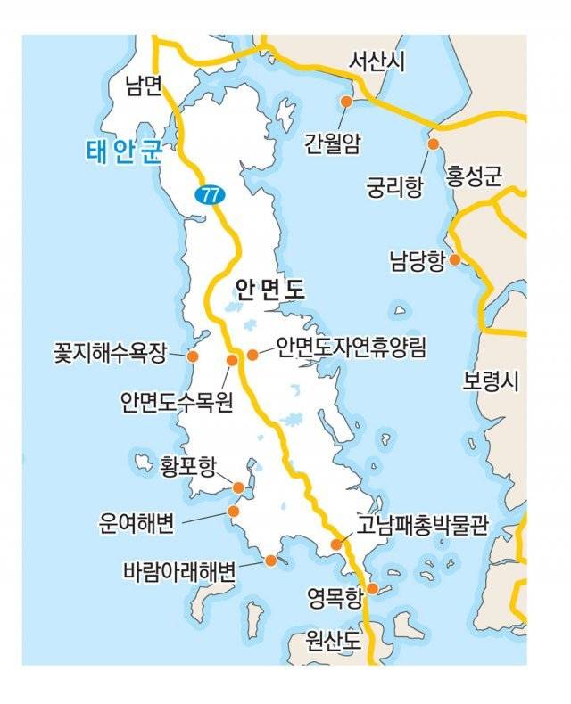 《조선시대에 건설된 운하로 육지가 섬이 된 충남 태안군 안면도는 변형된 지형만큼이나 굴절 많은 역사를 안고 있다.안면송이라고 불리는 훌륭한 적송(赤松) 덕분에 고려와 조선 때는 섬 전체가 ‘왕실의 숲’으로 보호받았지만, 외국 침탈 시기에는 수탈의 대상이 됐다. 섬이 통째로 일본인에게 팔리는 일도 겪었다. 천혜의 관광 자원을 갖춘 안면도 가을 여행은 땅에 얽힌 역사가 유달리 기억에 남는다.》