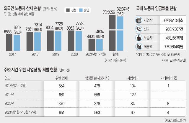 체불 5년간 148만명.. 외국인노동자 산재 매년 수천명