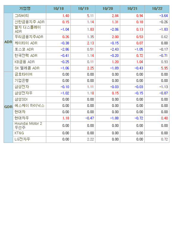 [표]해외 한국 DR 주간등락률