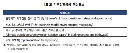 질문도 구체적이다. 발행사의 장기 전환전략이 파리협정과 일관적인지, 이 전략이 기후변화 시나리오에 따라 작성됐는지 등을 주요 질의하는 식이다.
