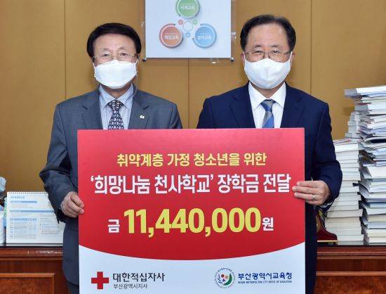 부산시교육청은 지난 22일 오후 4시 교육감실에서 대한적십자사 부산지사로부터 교육기부금 1140만원을 전달받았다.