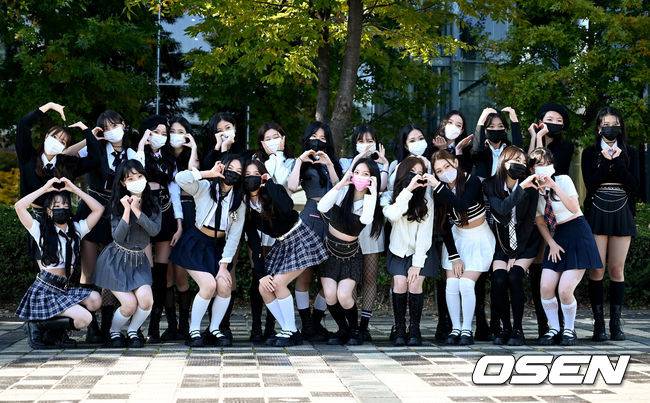 방과후 설렘 조수이, 이영채, 김수진, 권주안, 주효린, 김서진, 박유라, 이영채, 최사랑, 이지원, 박진현, 이수민, 원지민, 김예서, 오진경, 이하담, 이승은, 조은, 김리원, 미나미, 후쿠모토히나, 타케이카리나가 취재진을 향해 포즈를 취하고 있다. 2021.10.23 /ksl0919@osen.co.kr