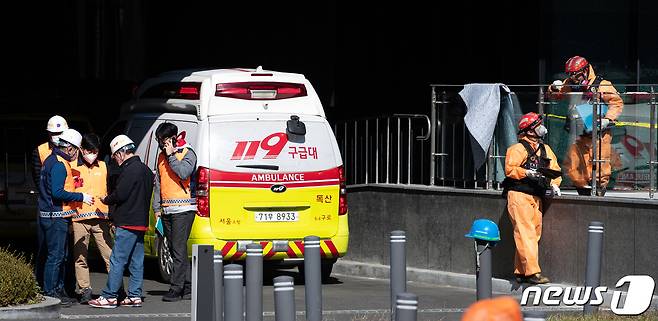 서울 구로소방서는 "23일 오전 8시53분 금천구 가산동의 한 건물 신축 공사 현장 지하 3층에서 화재 진압에 쓰이는 이산화탄소 설비가 터져 2명이 숨지고 2명이 중상을 입었다"고 밝혔다. 2021.10.23/뉴스1