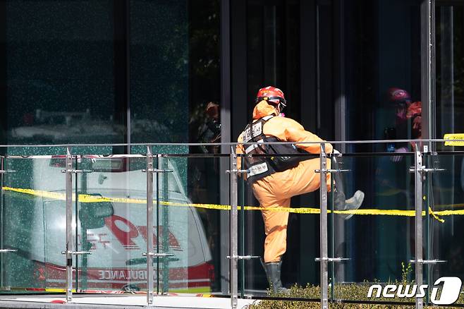 서울 구로소방서는 "23일 오전 8시53분 금천구 가산동의 한 건물 신축 공사 현장 지하 3층에서 화재 진압에 쓰이는 이산화탄소 설비가 터져 2명이 숨지고 2명이 중상을 입었다"고 밝혔다. 2021.10.23/뉴스1