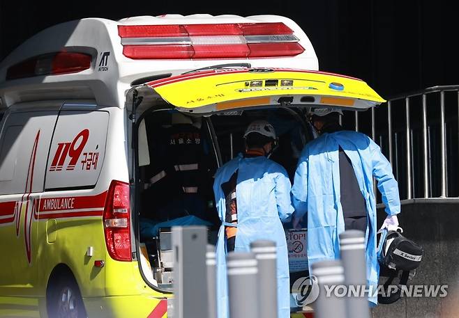 사고 현장 대기하는 구급 대원들