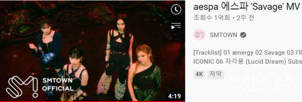 에스파 새비지(Savage) MV 1억뷰 돌파.. 자체기록 경신
