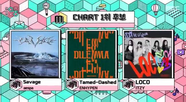 이날 공개된 10월 넷째주 1위 후보는 에스파 'Savage', 엔하이픈 'Tamed-Dashed', ITZY(있지) 'LOCO'가 이름을 올렸다.