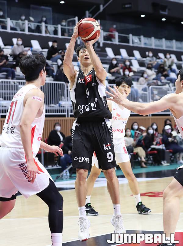 23일 오후 수원 KT 소닉붐 아레나에서 열린 2021-2022 KGC인삼공사 정관장 프로농구 수원 KT와 서울 SK의 경기, KT 김영환이 슛을 시도하고 있다.