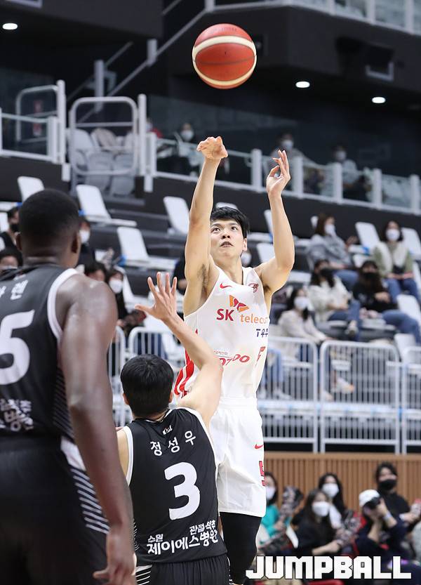 서울 SK는 23일 수원 KT 소닉붐 아레나에서 열린 수원 KT와의 2021-2022 KGC인삼공사 정관장 프로농구 정규리그 원정경기에서 접전 끝에 81-76으로 승리했다.
