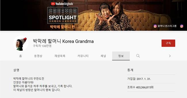 ◆박막례(채널명: 박막례 할머니 KOREA GRANDMA)