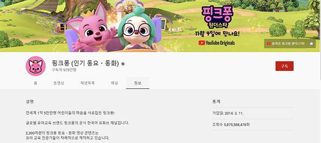'아기 상어'의 폭발적인 성공을 넘어 핑크퐁 채널은 현재 20개의 언어로 번역된 5000편 이상의 동요·동화 콘텐츠를 보유하고 있다. 특히 유튜브 키즈앱을 통해 5백만 이상의 구독자에게 사랑받고 있다. 유튜브 채널이 회사의 가장 큰 자산이 됐다는 평가다. 핑크퐁의 유튜브 스튜디오 책임자인 박한솔 유튜브스튜디오 실장은 "핑크퐁이 전 세계 어린이들의 사랑을 받고 있다는 것을 (확인할 수 있다는 게) 가장 큰 자랑"이라고 말했다.