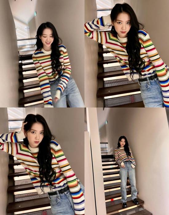 사진 속 지호는 모처의 계단 위에서 다양한 포즈를 취하고 있다.