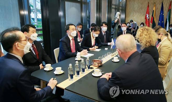 리투아니아 경제혁신부 장관 면담하는 문승욱 산업통상자원부 장관