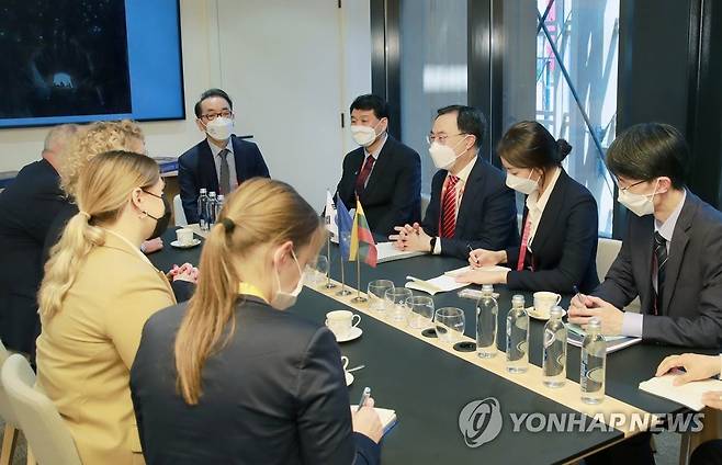 리투아니아 경제혁신부 장관 면담하는 문승욱 산업통상자원부 장관