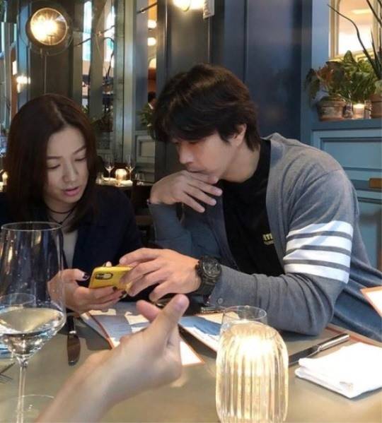 공개된 사진에는 권상우와 손태영이 한 식당에 나란히 앉아 휴대폰을 함께 보고 있는 모습이 담겼다.