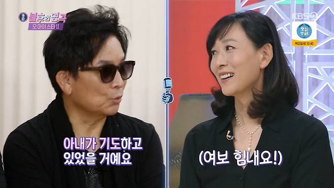 이에 유현상은 "아마 아내가 기도하고 있었을 거다. 트로피 사진을 찍어서 아내한테 먼저 보냈다"면서 아내 최윤희에 대한 애정을 드러냈다. 육중완은 "우승하고 대기실에 왔는데 바로 사진을 찍고 전송을 하시더라"고 증언했다.