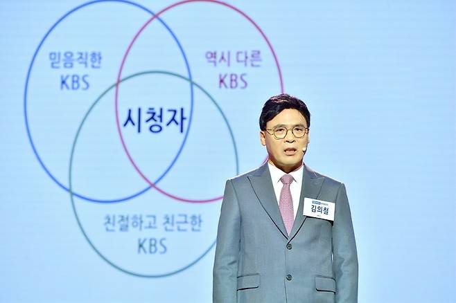 김의철 후보는 이날 “시청자와 함께 시청자로부터 해법을 찾겠습니다”란 슬로건 아래 자신의 주요 비전을 설명했다. “BTS에겐 강력한 팬들이 있는데 BTS는 진심으로 이 팬들을 대하고 있다”며 “KBS도 시청자를 진심으로 대하겠다”고 했다.