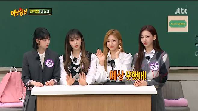23일 오후 방송된 JTBC '아는 형님'에는 그룹 에스파(aespa)가 출연했다. 에스파(카리나, 윈터, 지젤, 닝닝)는 '블랙맘바'와 '넥스트 레벨'에 이어 신곡 '새비지'까지 연달아 히트시킨 대세 그룹.