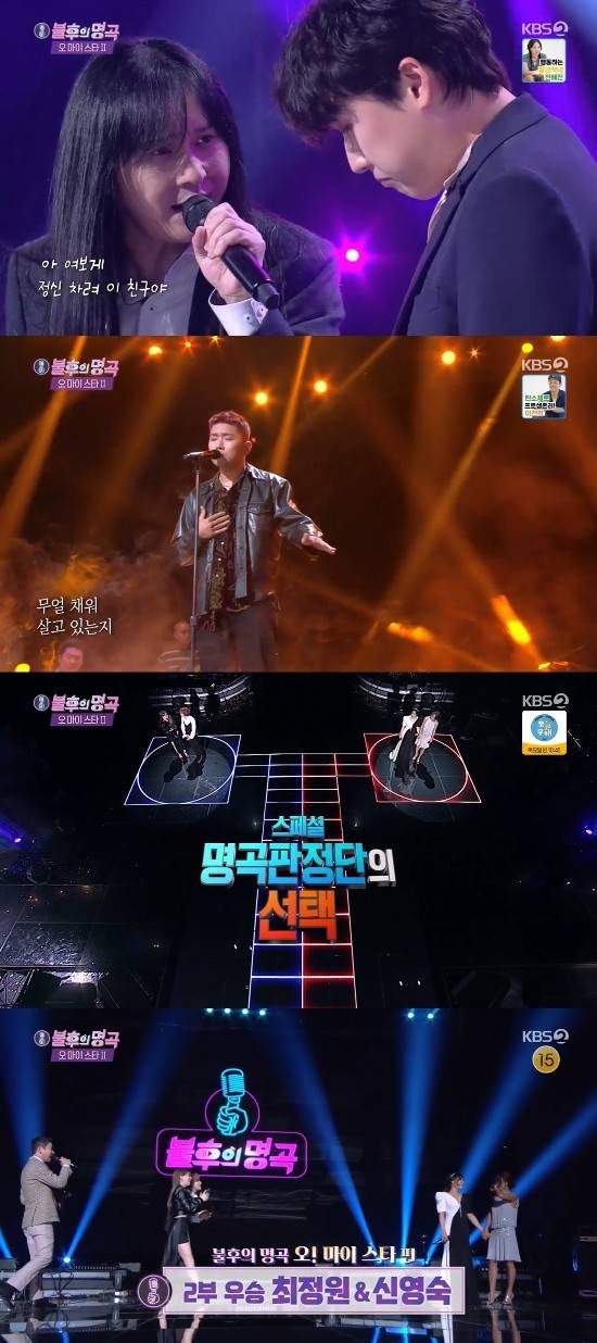 23일 방송된 KBS2 '불후의 명곡'은 지난주에 이어 선배 가수와 듀엣을 이뤄 역대급 컬래버 무대를 선사하는 '오 마이 스타' 2부가 진행됐다.