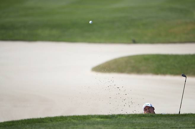 [서울=뉴시스] 조수정 기자 = 23일 인천 청라 베어즈베스트 청라GC에서 열린 하나은행 인비테이셔널 3라운드, 문도엽이 1번홀 벙커샷 하고 있다. (사진=KPGA 제공) 2021.10.23. photo@newsis.com *재판매 및 DB 금지