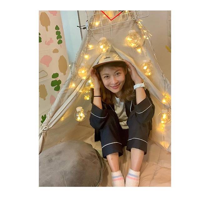 공개된 사진 속 하지원은 방 안에 마련된 조그마한 텐트 안에서 카메라를 응시하며 포즈를 취한 모습이다.