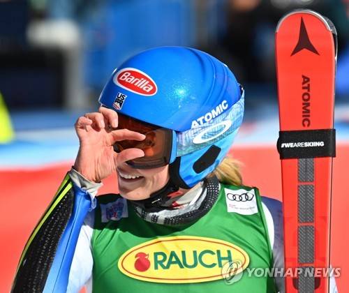 epa09541060 Mikaela Shiffrin of the United States reacts after the second run of the women?s giant slalom at the FIS Alpine Ski World Cup season opening in Soelden, Austria, 23 October 2021. EPA/PHILIPP GUELLAND