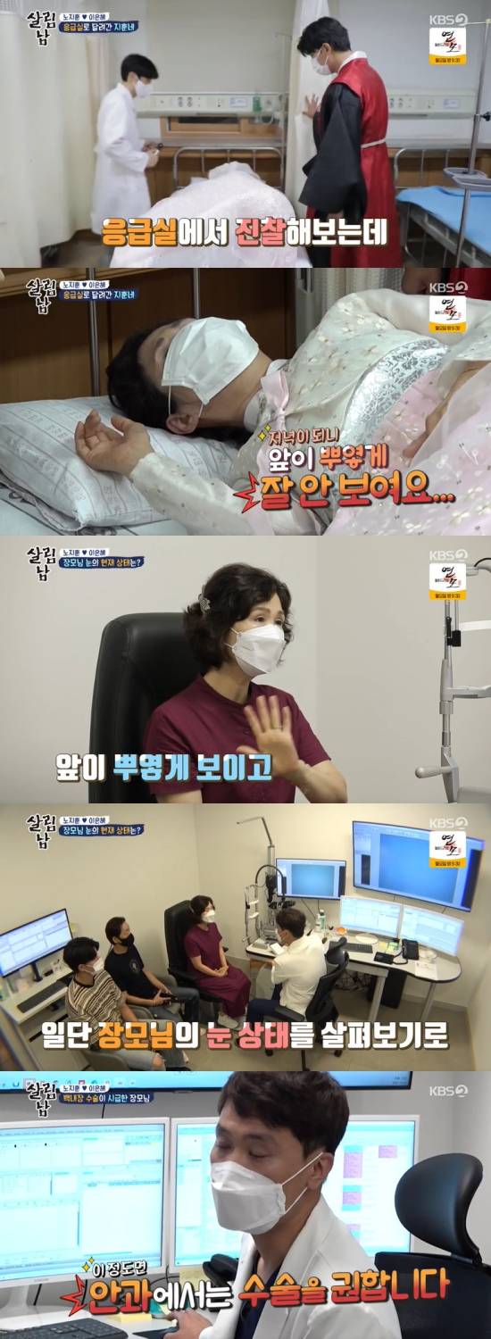결국 노지훈은 가족들을 데리고 처갓집으로 향했고, 다음 날 병원을 찾았다. 노지훈 장모는 "두 달 전부터 눈부심도 있었고 앞이 뿌연 증상이 있고 눈이 가렵다"라며 증상을 설명했고, 의사는 "이 정도 백내장이 있으면 안과에서 수술을 권한다. 또래 친구분들에 비해 백내장이 심하신 편이다"라며 진단했다.