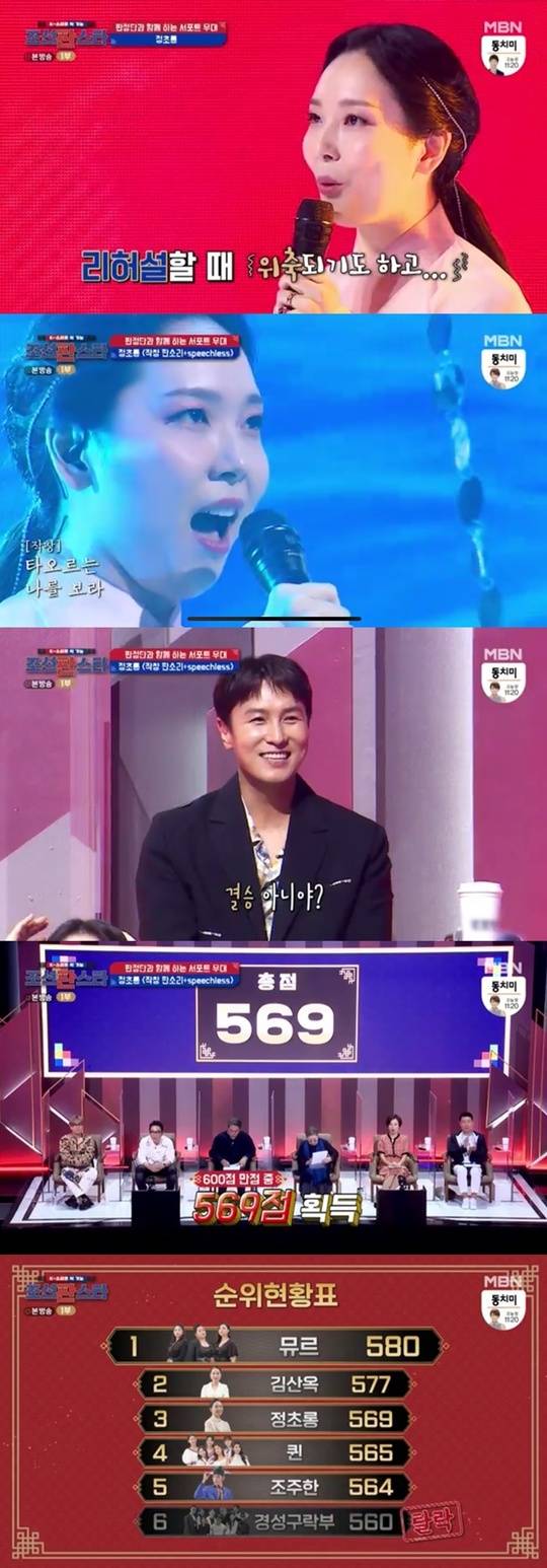 10월 23일 방송된 MBN 'K-소리로 싹 가능, 조선판스타'(이하 조선판스타)에서 정초롱이 혼자 서포트 무대를 꾸몄다.