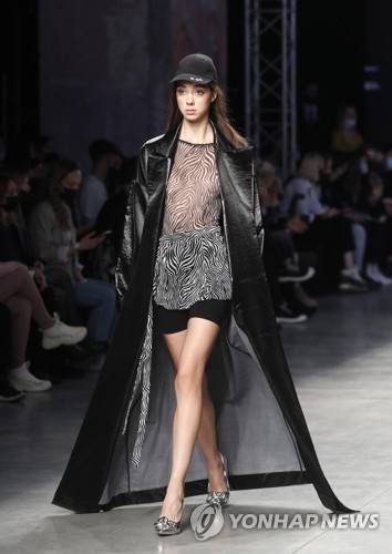 epa09541287 A model presents a creation by Russian fashion house M.I.R.277 during the Mercedes-Benz Fashion Week Russia, in Moscow, Russia, 23 October 2021. The Mercedes-Benz Fashion Week Russia takes place from 19 to 23 October 2021. EPA/MAXIM SHIPENKOV