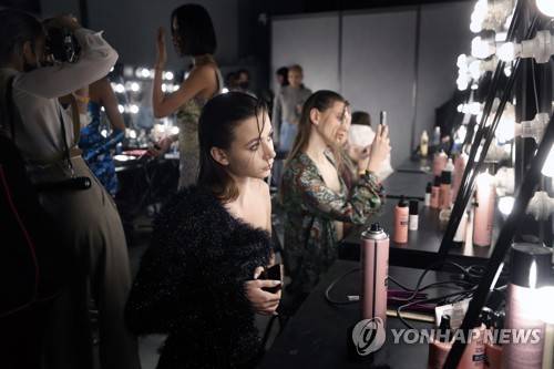 epa09541288 Models backstage prepare for a show during the Mercedes-Benz Fashion Week Russia, in Moscow, Russia, 23 October 2021. The fashion week runs from 19 to 23 October 2021. EPA/MAXIM SHIPENKOV