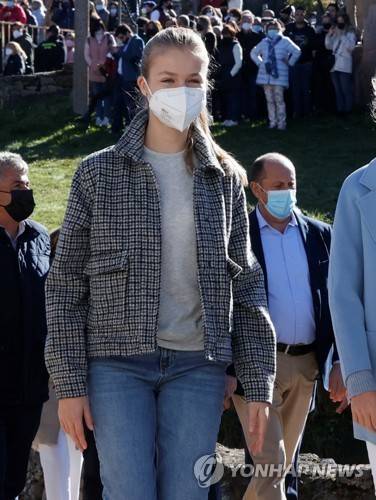 epa09541319 Spain's Leonor, Princess of Asturias visits Santa Maria del Puerto village in Asturias region, Spain, 23 October 2021, a day after the Princess of Asturias Awards ceremony. Santa Maria del Puerto won this year's Exemplary Town of Asturias Award presented annually by the Princess of Asturias Foundation. EPA/Ballesteros