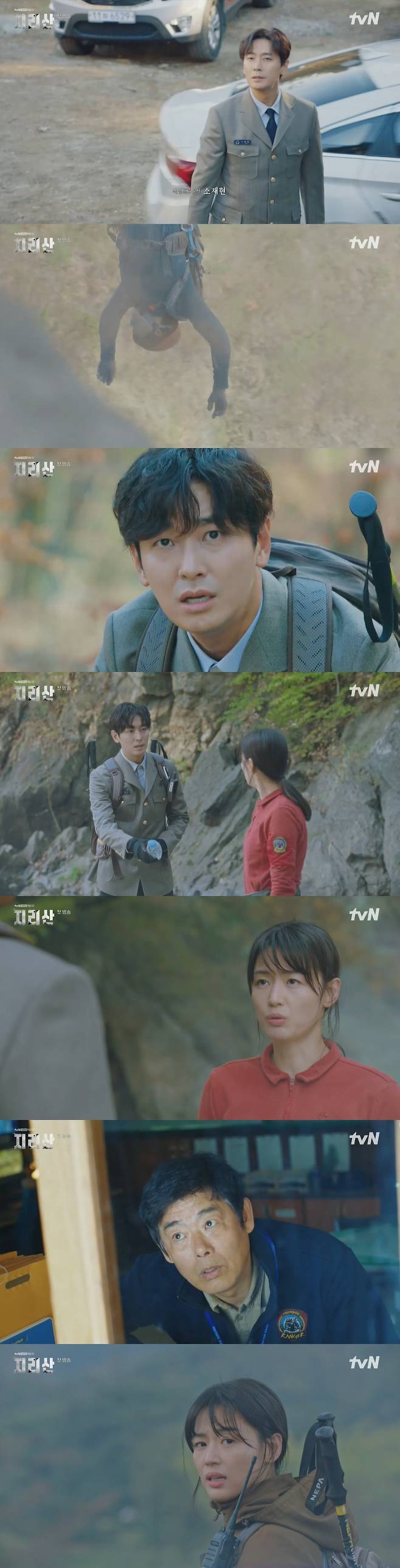 23일 첫 방송된 tvN '지리산'에서 지리산 국립공원 레인저 서이강(전지현 분)과 강현조(주지훈 분)가 산 속에서 심상치 않은 기운을 감지하는 모습이 그려졌다.
