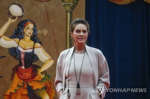 epa09541444 Italian director Elena Sofia Ricci arrives on the red carpet for 'Grido per un nuovo rinascimento' at the 16th annual Rome International Film Festival, in Rome, Italy, 23 October 2021. The Festa del Cinema di Roma runs from 14 to 24 October. EPA/FABIO FRUSTACI