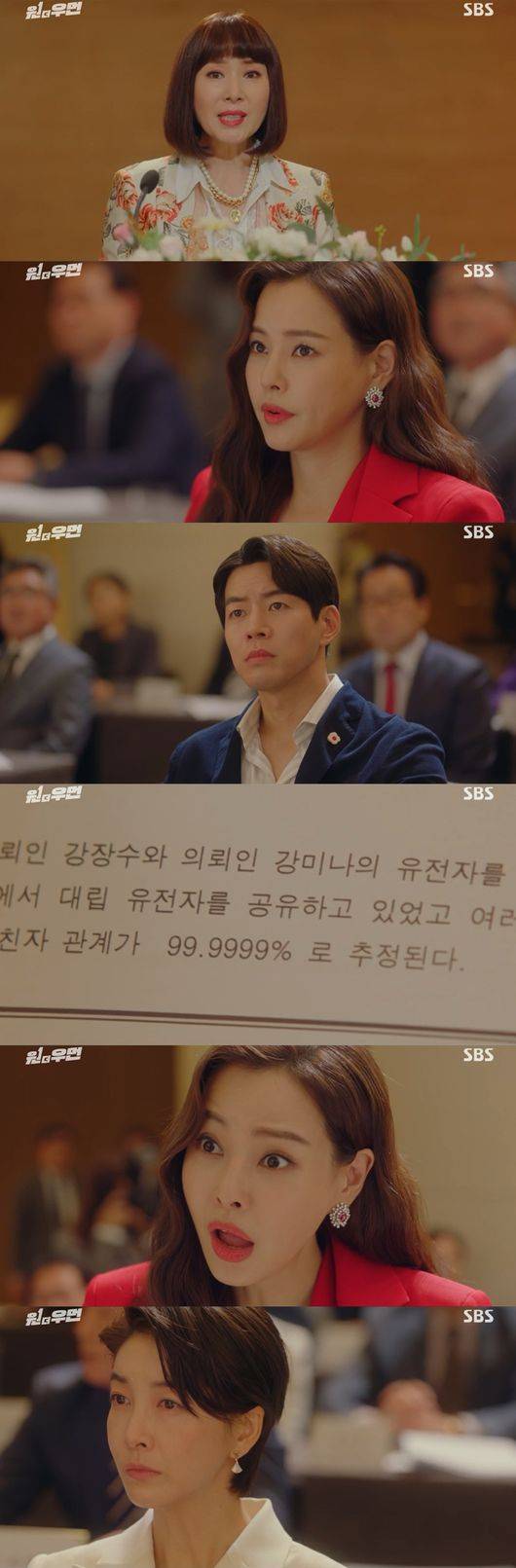 23일에 방송된 SBS 금토드라마 '원더우먼'에서는 강은화(황영희)가 강장수 회장과 조연주(이하늬)의 유전자 검사 결과를 발표한 가운데 두 사람이 친자로 밝혀졌다.