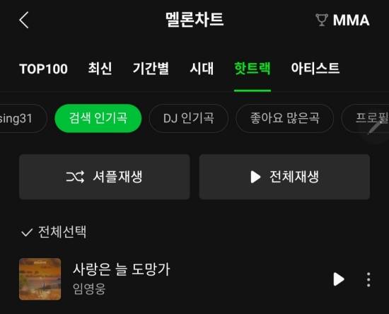 임영웅 '사랑은 늘 도망가', 멜론 검색인기곡 1위 등극