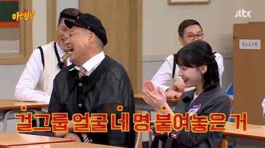 이에 이수근은 "호동이 얼굴이 '걸네붙'이잖나"며 "걸그룹 얼굴 네 명 붙여놓은 거"라고 설명해 모두를 폭소케 했다.
