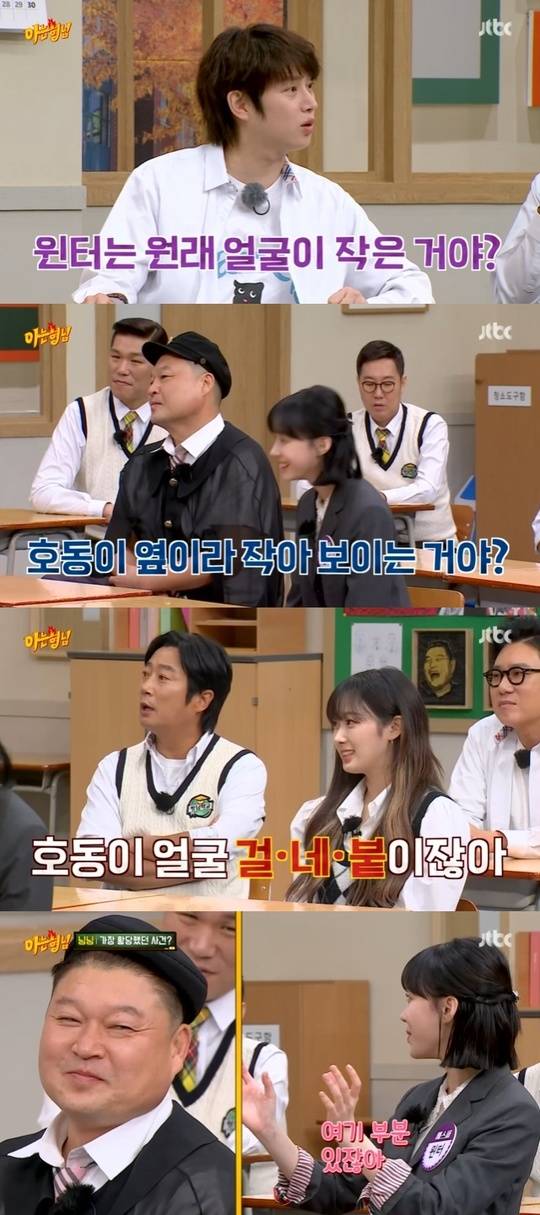 김희철은 "윈터 얼굴이 작은 거냐, 호동이 옆이라 작아 보이는 거냐"라고 의문을 드러냈다.