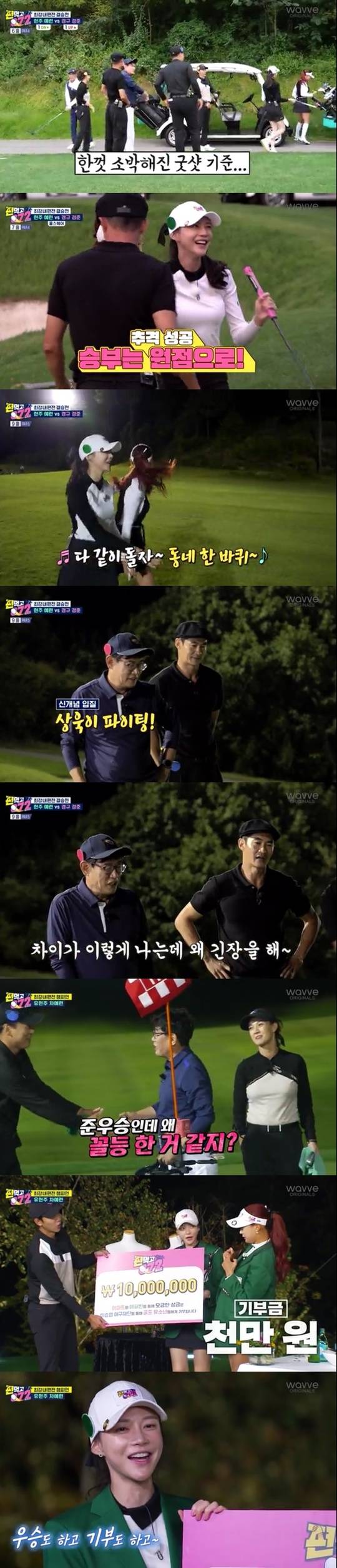 유현주 프로는 벙커샷을 준비했다. 유 프로의 세컨샷은 파 가능 거리에 안착했다. 세컨샷까지 막상막하를 다투는 상황. 강경준은 약한 샷으로 홀인에 실패했다. 차예련도 마찬가지. 두 팀은 끝까지 승부를 내지 못하며 마지막까지 갔다. 차예련은 "세상에 이럴 줄이야. 나 솔직히 쉽게 이길 줄 알았다"며 웃었고 유현주 프로는 "골프는 다양한 상황이 있기 때문에 쉽게 예상할 수 없다"고 말했다.