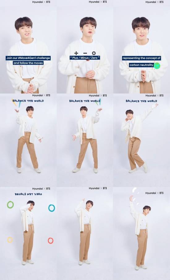 그중 멤버 정국은 "Join our #Move4Gen1 challenge and follow the moves 'plus, minus and zero' representing the concept of carbon neutrality"(우리 #Move4Gen1 운동에 참여하시고 탄소 중립을 나타내는 '+ - 0' 춤을 따라 해보세요)라는 영어 내레이션을 유창한 발음과 감미로운 보이스 톤으로 완벽 전달해 귀를 사로잡았다.