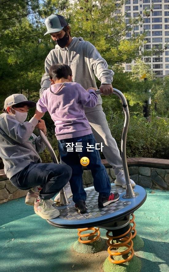 공개된 사진에는 정태우가 두 아들과 함께 놀이터에서 신나게 놀고 있는 모습.