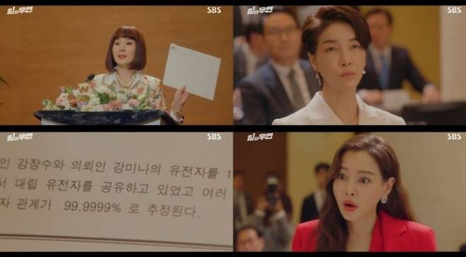 강장수 회장의 별장이 그대로 보존돼 있었고 그곳에서 찾은 면도기와 칫솔, 그리고 한주쪽에서 전달받은 강미나의 검체로 확인했다는 것. 그런데 결과지를 받아든 강은화의 표정이 이내 굳어지더니 강장수 회장과 강미나의 친자 관계가 일치한다고 발표했고, 이에 놀란 조연주는 벌떡 일어나 “뭐가 어쨌다고요? 왜??”라고 소리쳤다. 급기야 ‘내가 강장수 회장이랑 친자관계야?’라고 생각하는 상상초월 반전 엔딩이 담겨 긴장감을 높였다.