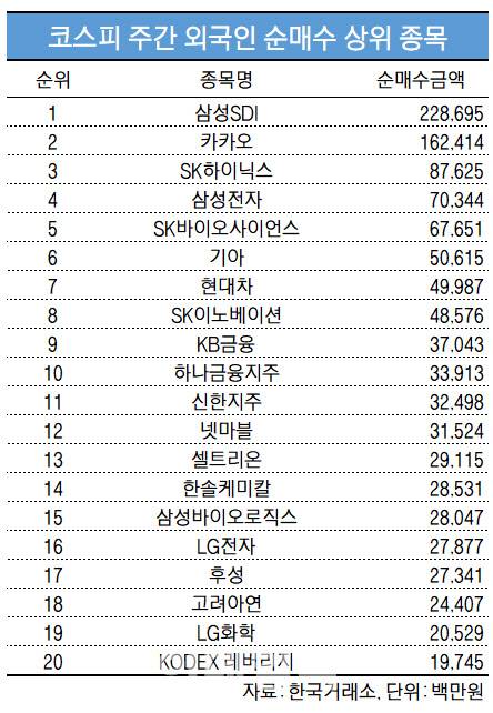 코스피 주간 외국인 순매수 1위 '삼성SDI'