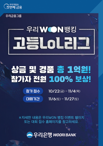 우리은행, 총 상금 1억원 '우리원뱅킹 고등LOL리그' 개최
