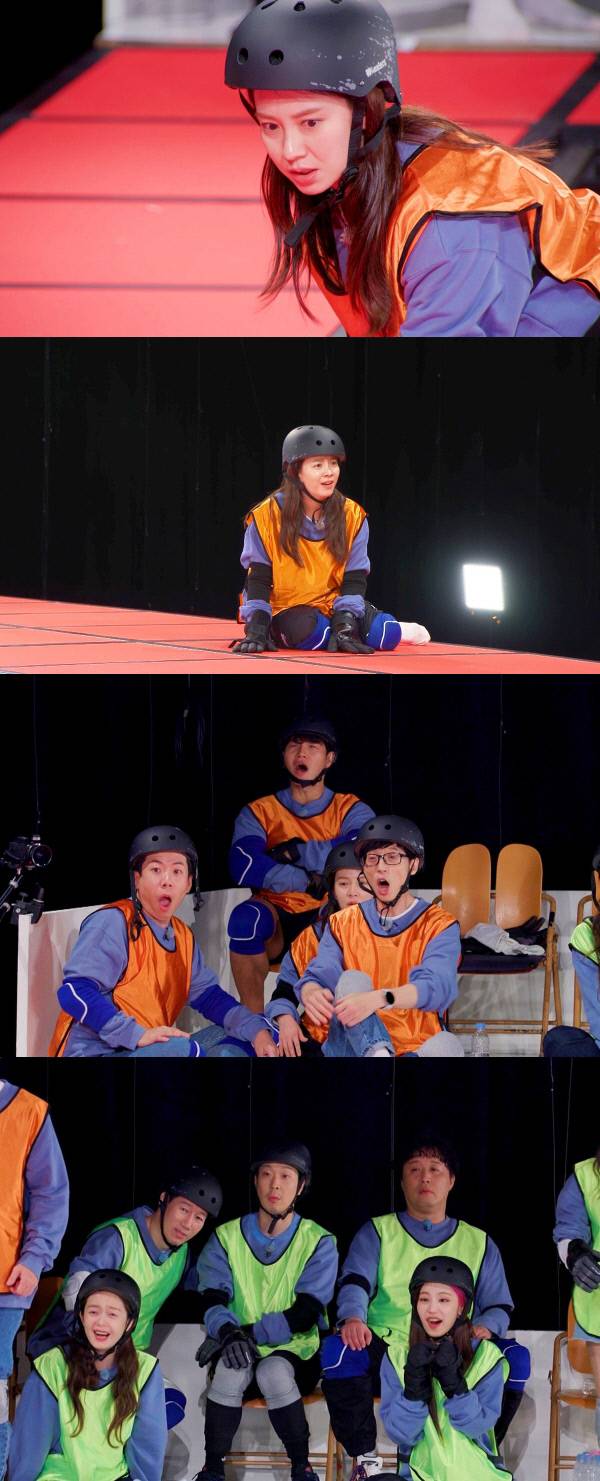 겁쟁이로 소문난 멤버들과 다르게 평소 담력이 세기로 유명한 송지효가 도전장을 내밀었다. 송지효는 223m 마카오타워에서 단번에 번지 점프를 성공하고, 7m 젠가 위에서 꿀잠을 자기도 하는 등 그동안 겁 없는 모습을 보여 왔던바 있다. 이에 모든 멤버들은 송지효가 과감히 도전할 거라 예상했지만 막상 발판 위에 선 송지효는 “나 지금 손 떠는 것 봐! 너무 무서워!”라고 발도 못 떼는가 하면, 다리가 풀려 주저앉기까지 하며 공포에 떨었다. 이를 본 멤버들은 “송지효가 안 되면 우리도 안 돼!”라며 더욱 두려워했고, 송지효의 낯선 겁쟁이 면모에 놀라워하기도 했다.