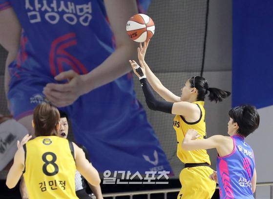 삼성생명 2021-22 여자프로농구 공식개막전 삼성생명과 KB스타즈의 경기가 24일 오후 용인 실내체육관에서 열렸다. KB 강이슬이 슛하고있다.